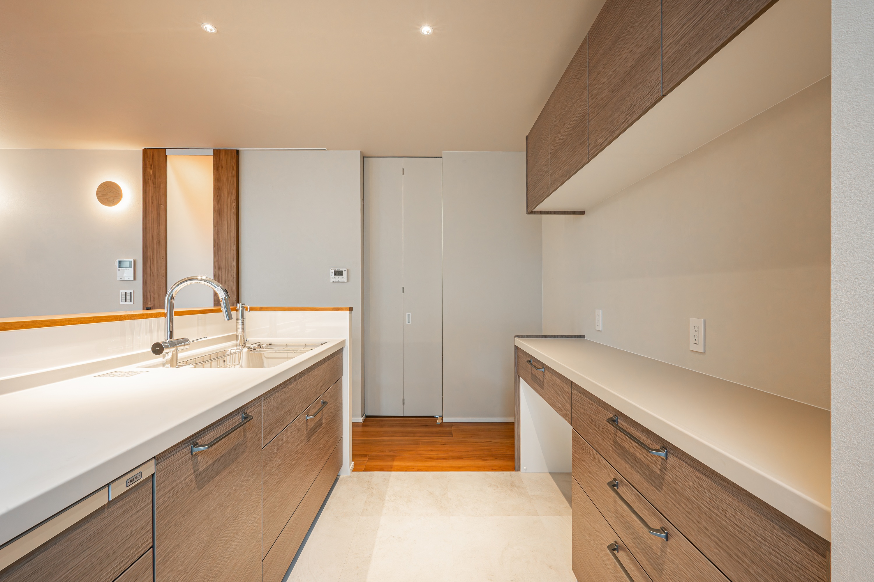 ・#和室にはカウンダ―上に丸い照明を配置。