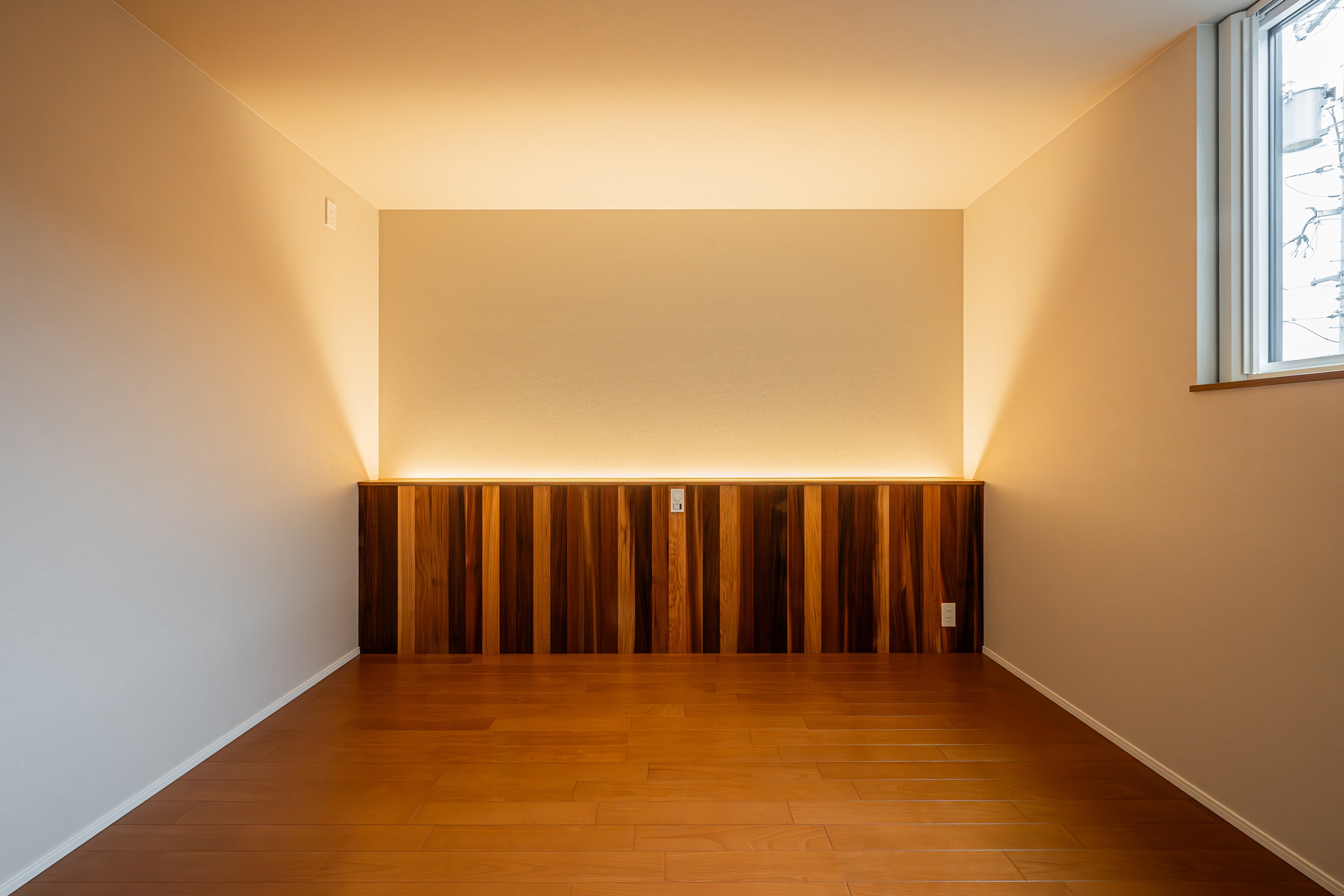 二階の寝室には間接照明を採用し、光源を見せないやわらかな灯りが、一日の終わりに心を静かにほどいてくれます。