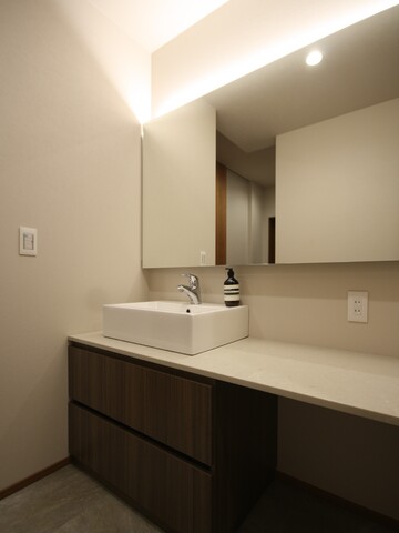 2人以上が並んでも余裕をもって使える広さで、カウンターとミラーの長さをそろえているため、隣でメイクやスキンケアもゆっくり楽しめます。