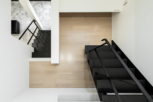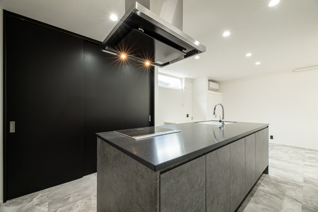 ブラックとライトグレーが織りなす外観には、背筋が伸びる美しさと、家族の帰りを迎える落ち着きが共存。