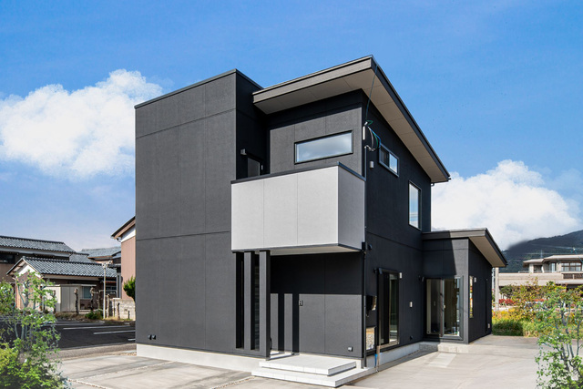 スタイリッシュなコントラストが印象を引き締め、住宅街に際立つ落ち着いたモダンな佇まいに仕上がりました。
