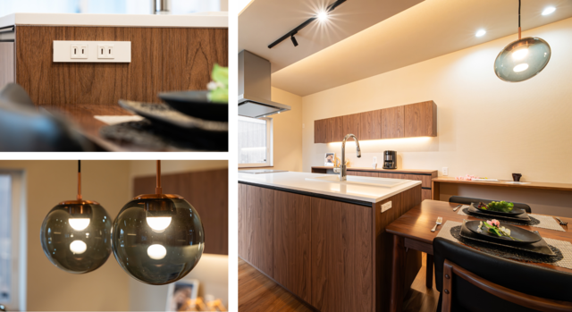 ダイニング側に面した#オリジナルキッチンの側面にはコンセントを設置しており、ホットプレートや電気鍋などの調理家電もスムーズに使用できます。