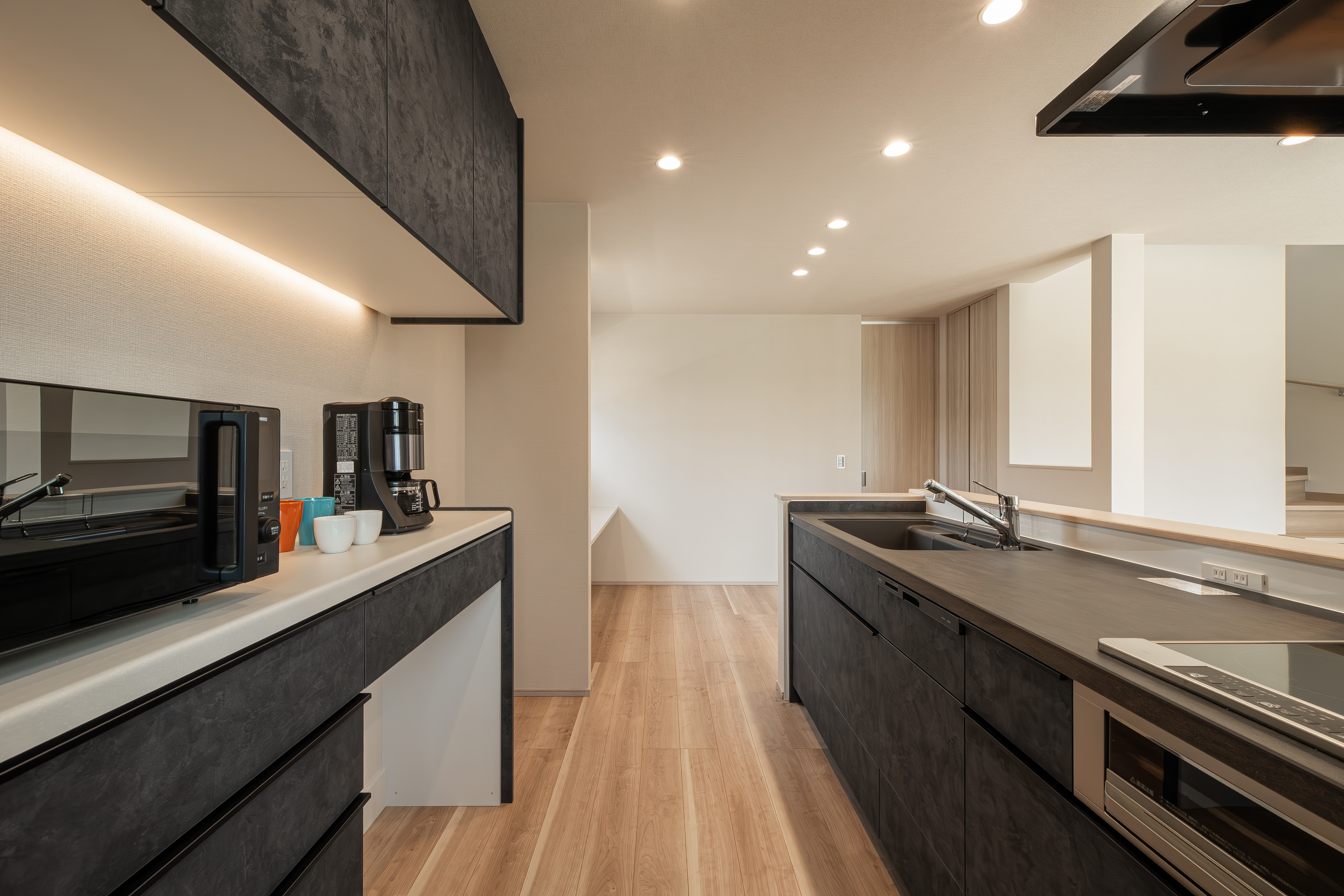 ダイニングの裏手にはスタディスペースを設け、お子様の宿題や読書、ご夫婦の家計管理や在宅ワークなど、家族それぞれの”ちょっとした作業“にちょうどいい場所です。