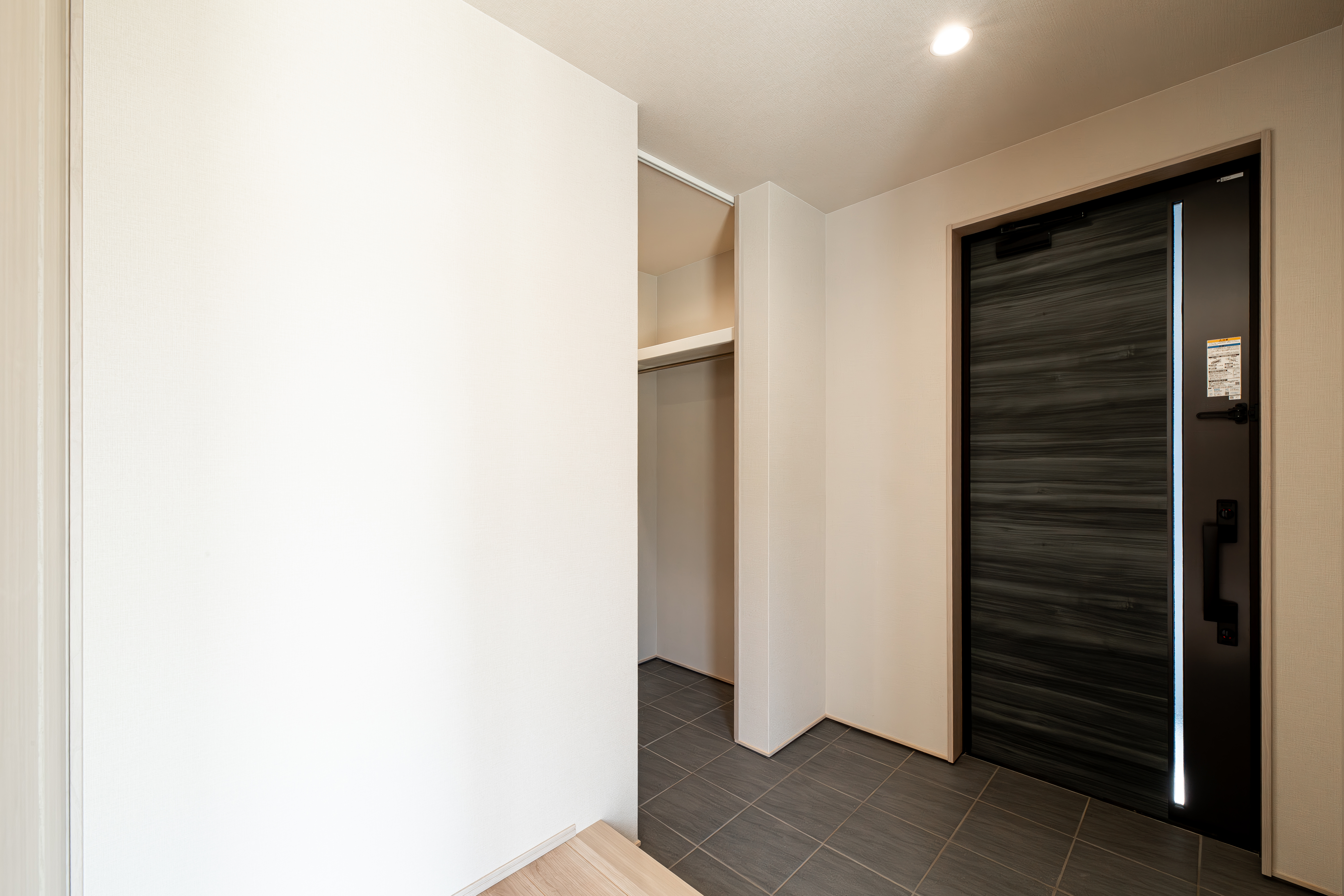 玄関まわりがいつも整った印象に。 ECLからランドリー・洗面室へとつながる動線は、帰宅後すぐに着替え・手洗いができる習慣づくりにもつながり、感染症対策としても安心です。