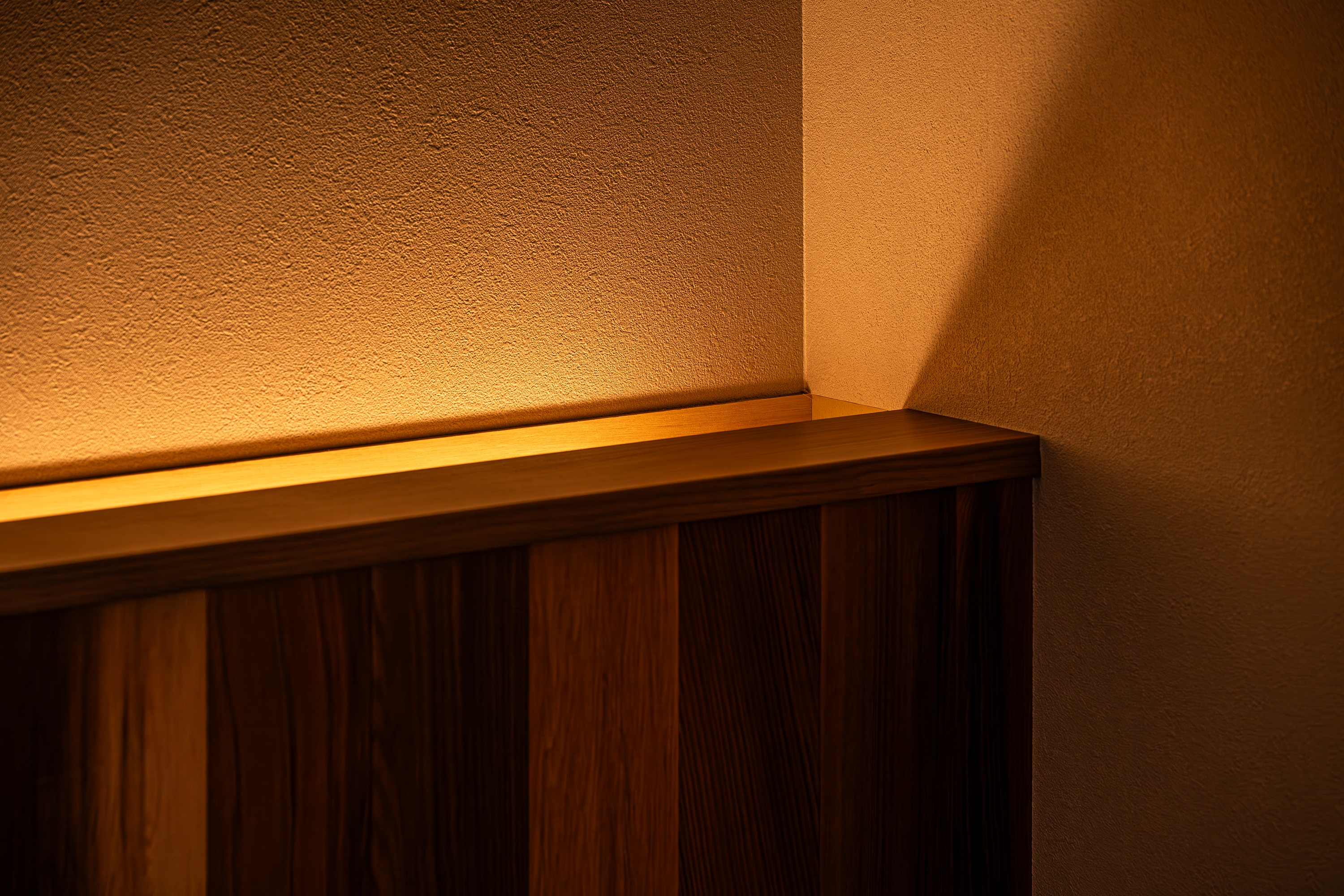 光源を直接見せない計画とし、一日の終わりに心と身体を静かに整えられる、落ち着いた雰囲気を作ります。