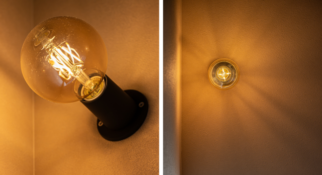 ・階段には#エジソン電球を採用。